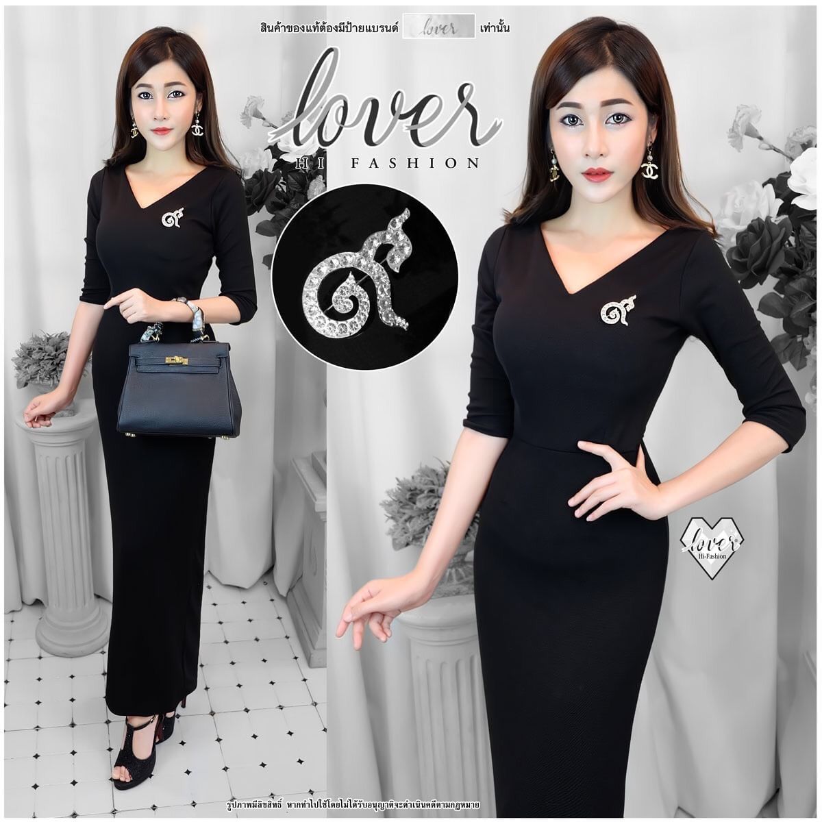 งายขายดีมาเพิ่มรีบสั่งนะคะ ชุดแขนและกระโปรงยาวทรงสุภาพ *มาพร้อมเข็มกลัดเพชรเลข ๙ อันใหญ่* ( ของแท้ติดป้ายLOVER) ราคาส่ง290 บาท